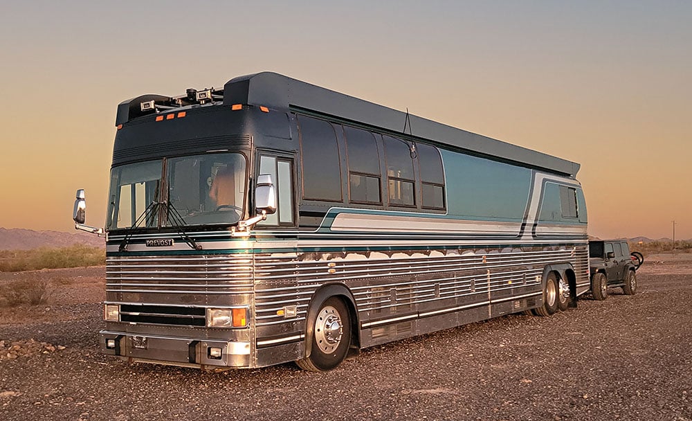 By 2024, our “Renegade” lifestyle needed a bigger platform. The boys were outgrowing the floor-hatch bunks, and the vintage engine was ready for a rebuild. We upgraded to a 1996 Prevost—a rig built to go a million miles—and outfitted it with a dedicated bunk room for the kids and, of course, a top-tier power system.